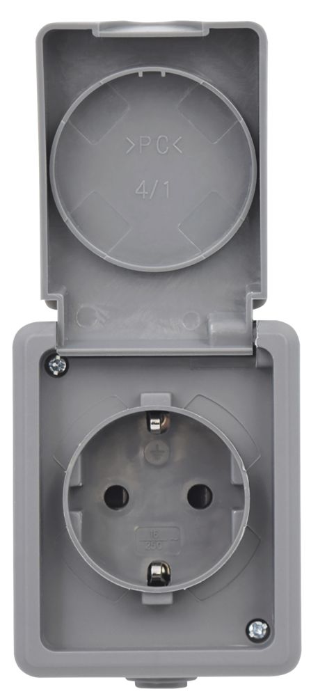 Feuchtraum Steckdose McPower ''Secure'', 250V~/16A, IP44, AP, grau