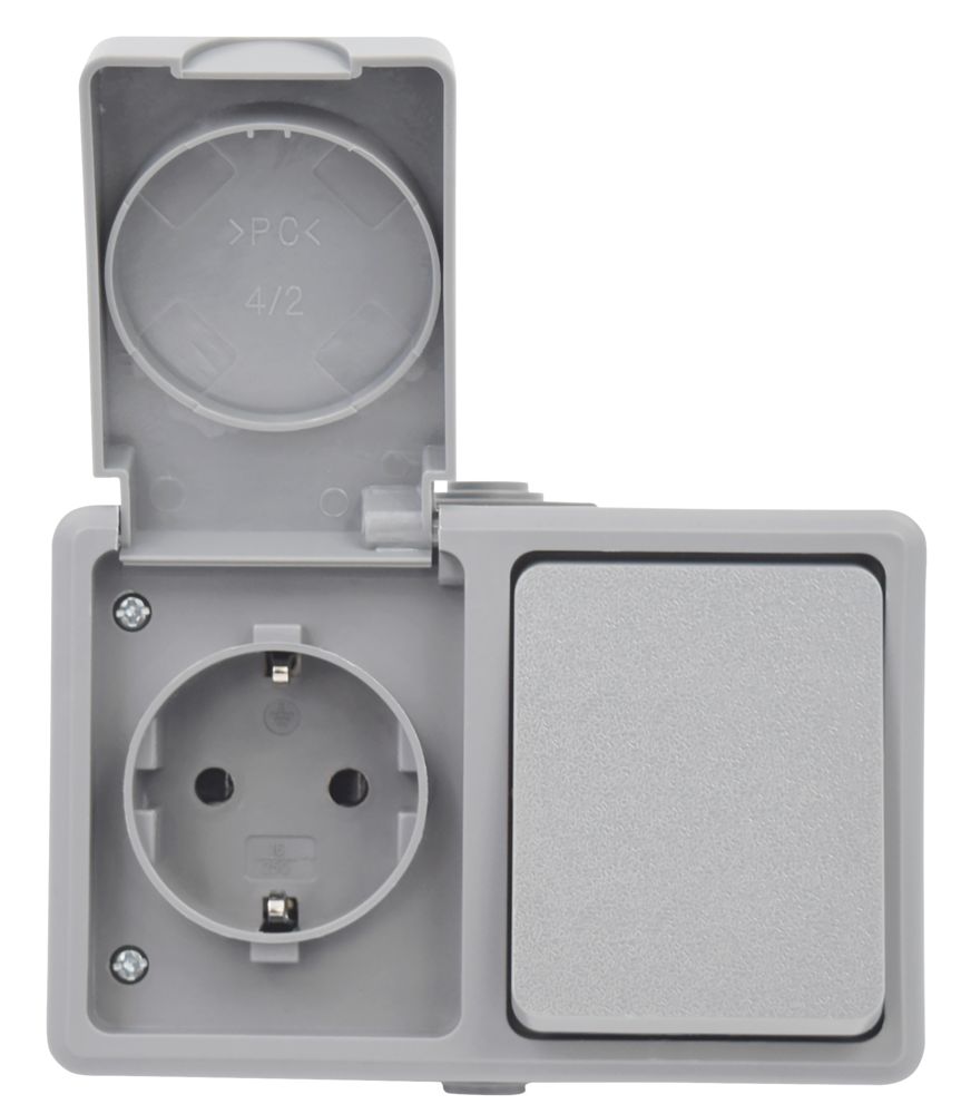 Feuchtraum Kombi-Dose McPower ''Secure'' 250V~, Schalter+Steckdose, IP44, AP, grau