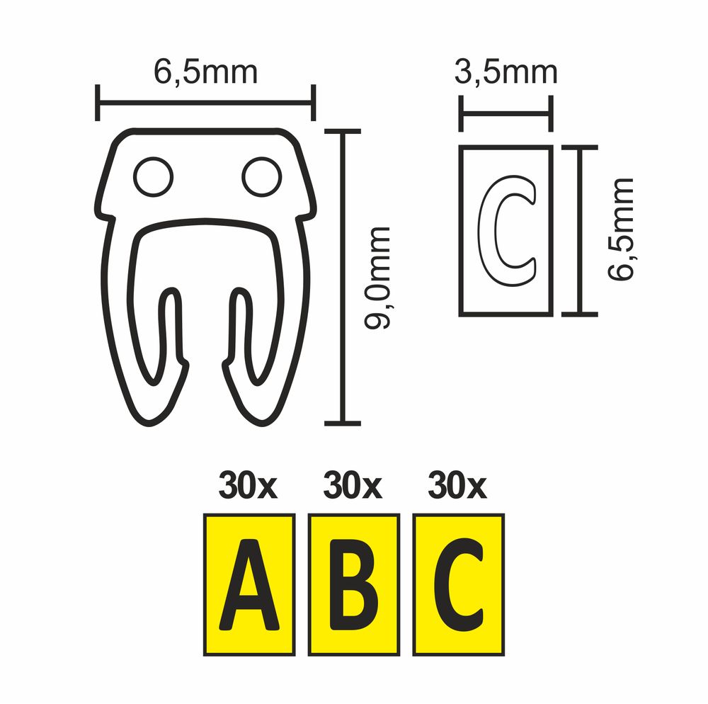 Kabelmarker-Clips McPower, bedruckt mit Buchstaben, Kabeldurchmesser bis 6mm