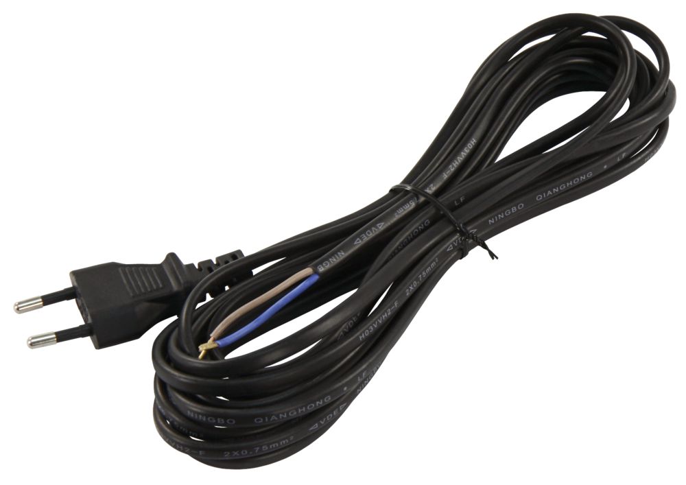 Euro-Netzkabel McPower mit blanken Enden Länge 5,0 m, 2x0,75 mm², schwarz
