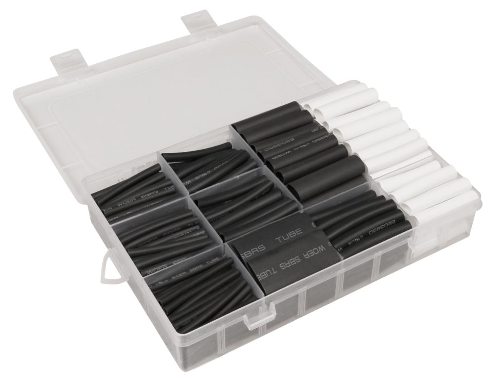 Der Artikel Schrumpfschlauch-Set McPower, 300-teilig in Sortimentsbox, klebend, schwarz/weiß ist derzeit auf Lager