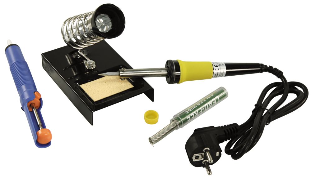 Lötset McPower ''LS-769,6 cm ( 303 Zoll ) 30W-Lötkolben, Entlötpumpe, Ständer, Lötzinn, auf Blister