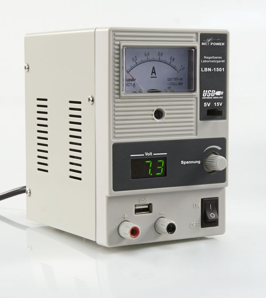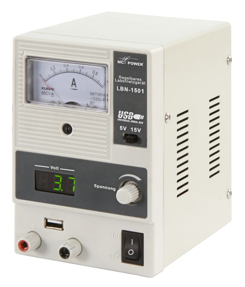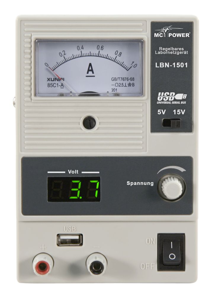 Labornetzgerät McPower ''LBN-3812,5 cm ( 1501 Zoll ), 0-15V, 0-1A, 15 Watt, 5V USB
