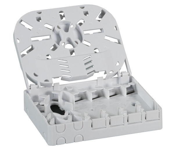 Material Kunststoff Farbe Weiß Max. Anzahl Fasern 4 Spleißschutztyp Schrumpf Geeignet für Kupplung SC Simplex/LC Duplex/E2000® Max. Bestückung (Adapter) 4 Mit Faserüberlängenaufnahme Ja
