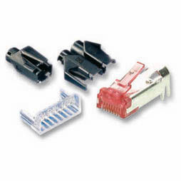 TP-Stecker STP Hirose,CAT6(TM21),100-PACK,incl.Knickschutz, Rot