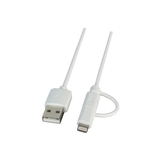 Kabel USB, A(St) => B(St)+Lightning(ST), 1,0m, USB2.0, weiß,