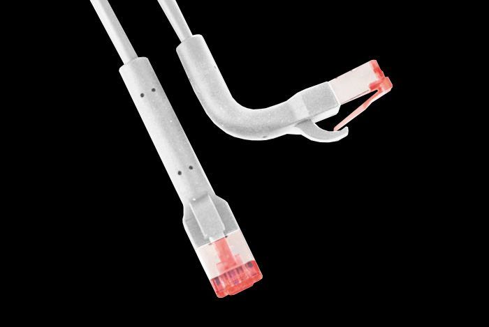 Patchkabel RJ45, CAT6A 500Mhz, 1,5m, weiss U-STP(U/FTP) TPE, biegbare Stecker 90Grade,