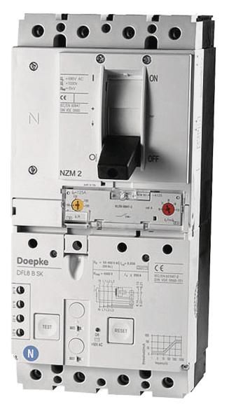Leistungsschalter mit Fehlerstromschutz (CBR) schalten hohe Ströme, schützen Betriebsmittel, Kabel und Leitungen vor Überstrom und Personen vor elektrischem Schlag. DFL 8 sind kompakte Geräte mit integriertem Hilfsschalter und Anschlussklemmen für große Leitungsquerschnitte. Schalter des Typs B sind allstromsensitiv bei Frequenzen von 0 Hz (glatten Gleichfehlerströmen) bis 150 kHz. Sie sind erhöht stoßstrom- und gewitterfest. Schalter mit der Kennlinie SK stehen für Fehlerstromschutz und eine hohe Anlagenverfügbarkeit. Sie zeichnen sich durch eine geringere Ansprechempfindlichkeit bei höheren Frequenzen aus. Unerwünschte Auslösungen durch Ableitströme werden damit weitestgehend vermieden. Schalter dieser Variante haben einen festen Bemessungsfehlerstrom von 30 mA für den Personenschutz. Sie gewährleisten somit den Fehler- und Brandschutz sowie den zusätzlichen Schutz (Personenschutz, Schutz bei direktem Berühren). Geräte in Standardausführung sind für die Überwachung von Stromkreisen mit einer Bemessungsspannung von 230 V, 400 V und einer Bemessungsfrequenz von 50 Hz ausgelegt. Eigenschaften: fester Bemessungsfehlerstrom von 0,03 A, Bemessungsströmen von 100 A bis 250 A, Bemessungsspannung 230 V, 400 V AC, vierpolig, Fehlerstromerfassung für glatten Gleichstrom sowie Wechsel- und pulsierende Gleichströme, hohe Toleranz gegenüber Schwankungen der Hilfsspannung bei der Erfassung von Fehlerströmen Typ B, netz- und hilfsspannungsunabhängige Auslösung bei Fehlerströmen vom Typ A und bei Überstrom, hohes Kurzschlussschaltvermögen, Anschlussklemmen bis 185 mm2, hohe Stoßstromfestigkeit, d. h. geringe Neigung zu Fehlauslösungen durch transiente Fehlerströme, Schwellen für unverzögerte und verzögerte Überstromauslösung einstellbar, Hilfsschalter integriert, Montageart: Befestigung auf Montageplatte, Einbaulage beliebig, Einspeisung von unten, Einsatzgebiete: Stromversorgungen in Zweckgebäuden sowie Industrieanlagen mit TN-S-, TT- und TN-C-S-Netzen mit hoher Kurzschlussleistung, In IT-Netzen kann die Fehlerstromauslösung des CBR zur Abschaltung im Falle eines zweiten Erdschlussfehlers vorgesehen werden, Aufgrund seiner allstromsensitiven Fehlerstromauslösung eignet sich dieser allstromsensitive CBR insbesondere zum Schutz von Anlagen mit elektronischen Betriebsmitteln. die eingangsseitig nicht galvanisch vom Netz getrennt sind, ausgeschlossen ist der Einsatz zum Fehlerstromschutz in TN-C-Netzen.