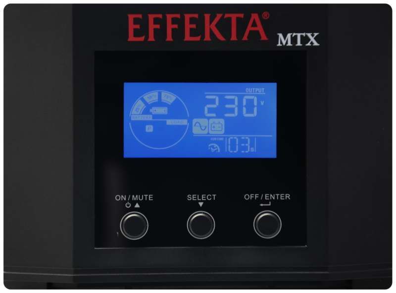 Effekta MTX Lineinteraktive USV, 1500VA, 7min bei cos phi 0,7 , MTX1500, USB+RS232, Schwarz, Sinus-Ausgang,