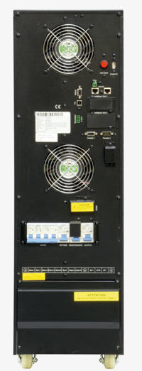 IP20 Farbe: schwarz Funkentstörung: nach DIN EN 62040-2, Klasse C3 Leistungsmerkmale: Großes 17,8 cm ( 7 Zoll )-Multilanguage-Touchscreen LCD Panel Schnittstellen: RS232, RS485, Schaltkontakte, Parallel port, REPO 2x Erweiterungsslot für optionale Relais- und SNMP-Karte Elektronischer Bypass, manueller Servicebypass N+X Parallelbetrieb Batterieladeparameter über LCD Panel konfigurierbar Intelligente 3-stufige Batterieladung Periodisch-, automatischer Batterietest einstellbar