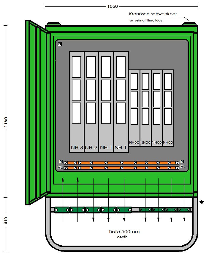 2 Abgänge über Lastschaltleisten Gr. NH1