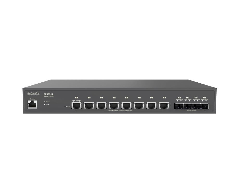 EnGenius Switch full managed Layer2+ 12 Port ? 8x 10 GbE ? 4x SFP+ ? 33 cm ( 13 Zoll ) ? ECS5512 ? EnGenius Cloud