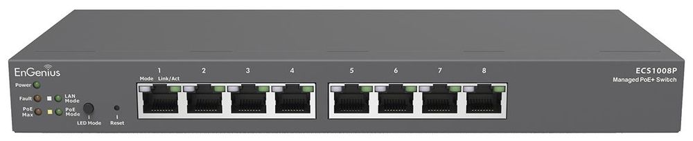 EnGenius ECS1008P Cloud Managed 8-port GbE PoE.af Switch 55W 2GbE smart+ DT