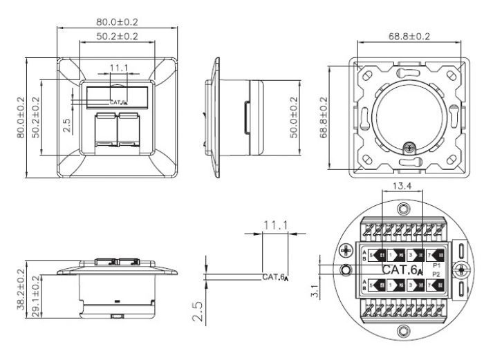 Equip Cat6a Unterputzdose+Frontplatte 2xRJ45 45°5Stk RAL1013