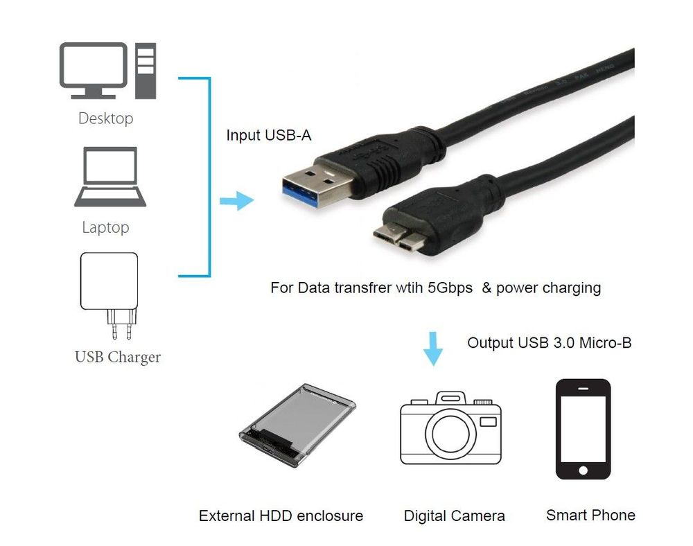 Equip Kabel USB-A3.0->Micro-B St/St 1.80m schwarz Polybeutel