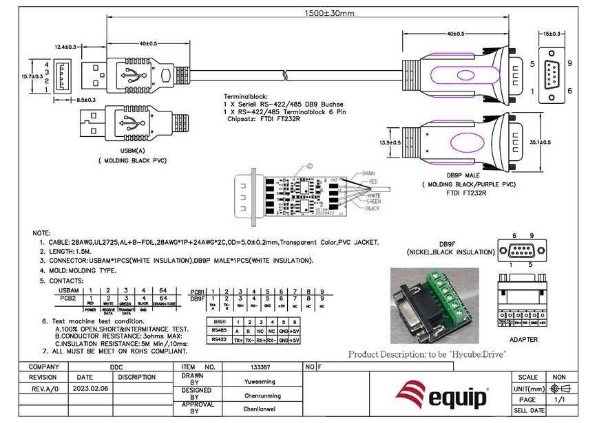 Der Artikel Equip Adapter USB-A->Serial RS422/RS485 FTDI St/St 1.50m ist derzeit auf Lager
