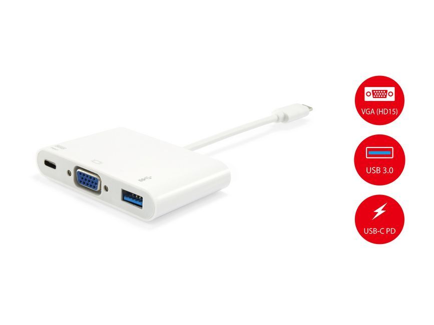 Der Artikel Equip Dock 3-1 USB-C->VGA,USB-A,60W USB-C 0.15m ist derzeit auf Lager