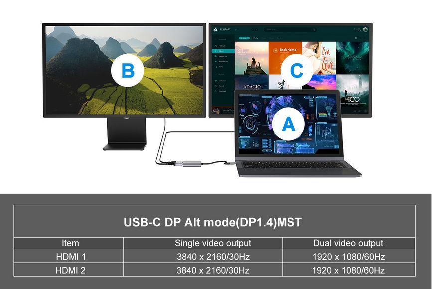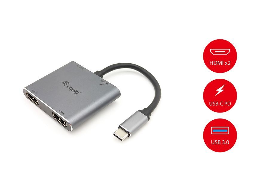 Equip Dock 4-1 USB-C->2xHDMI,USB-A,100W USB-C 0.15m