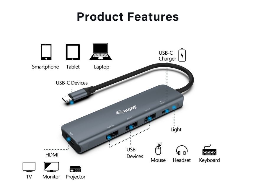 Equip Dock 5-1 USB-C->HDMI,3xUSB-A,100W USB-C 0.25m