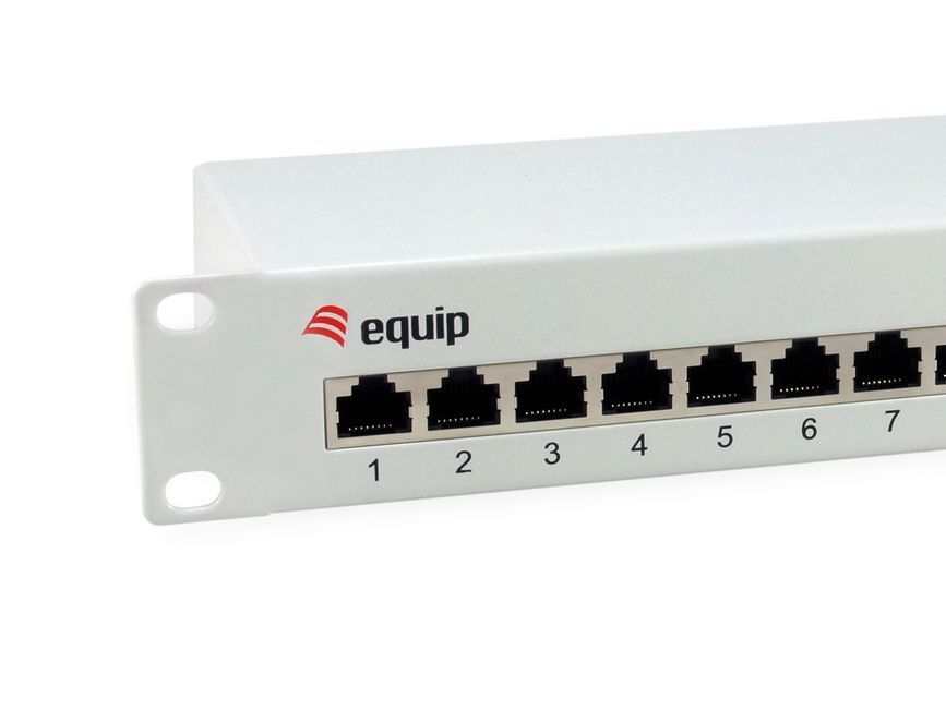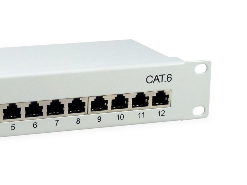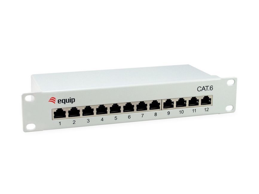 Equip 25,4 cm ( 10 Zoll ) Patchpanel 12xRJ45 Cat6 FTP 1HE 250MHz RAL7035