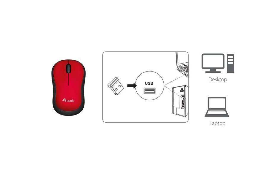 Der Artikel Equip Komfortmaus Wireless USB-A L+R rot ist derzeit auf Lager