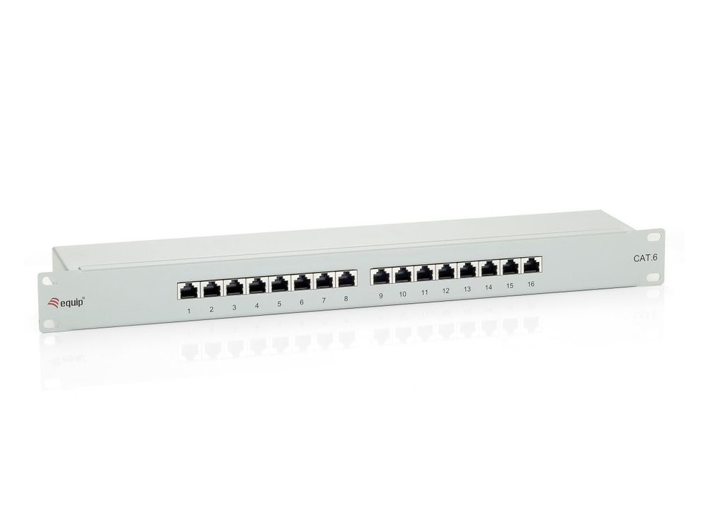 Equip 48,3 cm ( 19 Zoll ) Patchpanel 16xRJ45 Cat6 FTP 1U 250MHz RAL7035