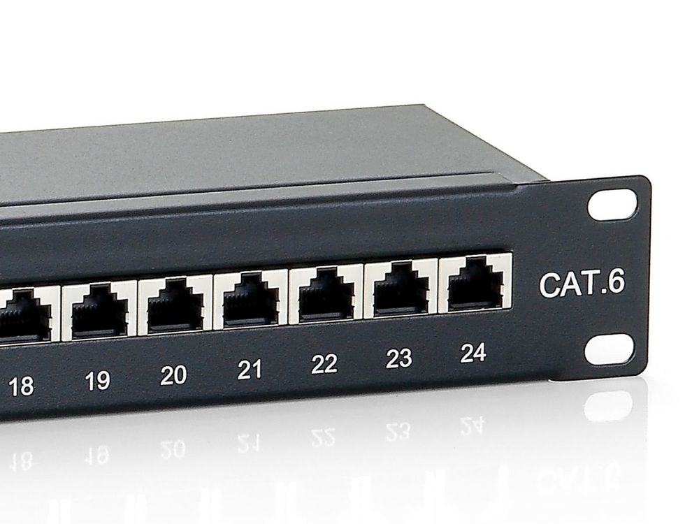 Equip 48,3 cm ( 19 Zoll ) Patchpanel 24xRJ45 Cat6 FTP 1U 250MHz RAL9005