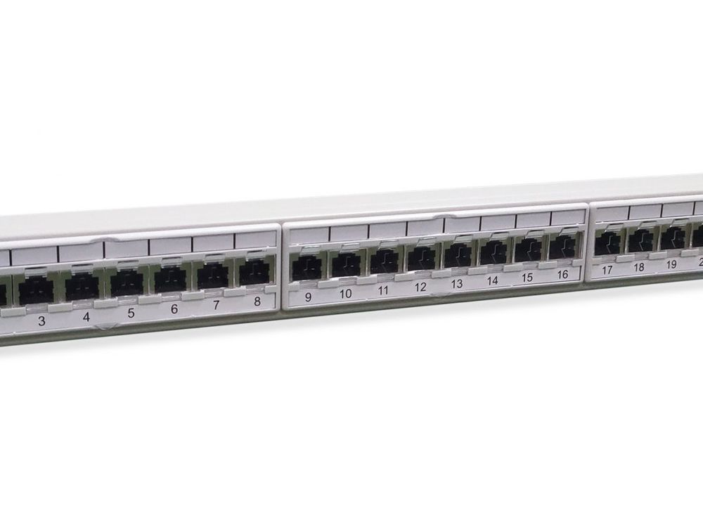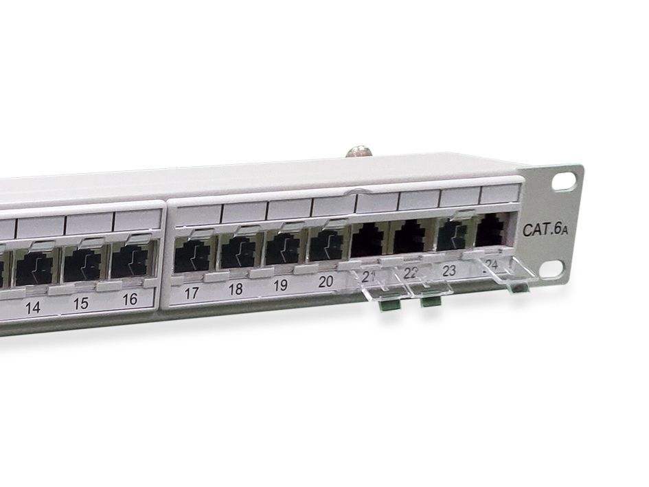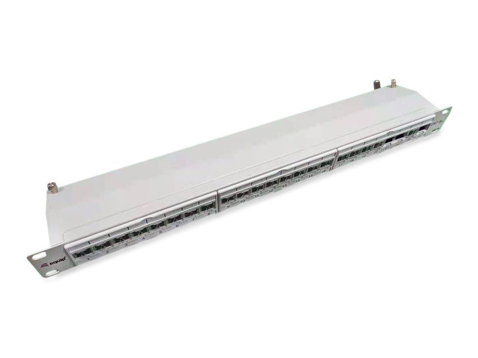 Equip 48,3 cm ( 19 Zoll ) Patchpanel 24xRJ45 Cat6a FTP 1U 500MHz RAL7035