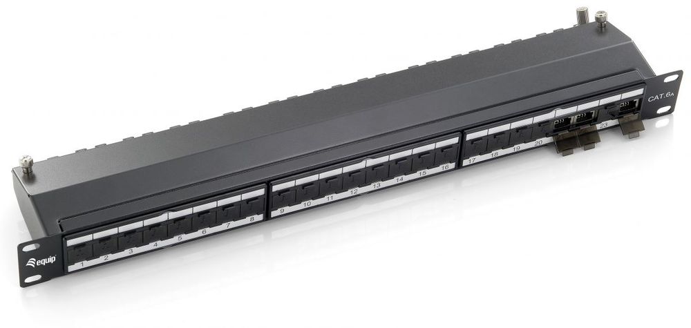 Der Artikel Equip 48,3 cm ( 19 Zoll ) Patchpanel 24xRJ45 Cat6a FTP 1U 500MHz RAL9005 ist derzeit auf Lager