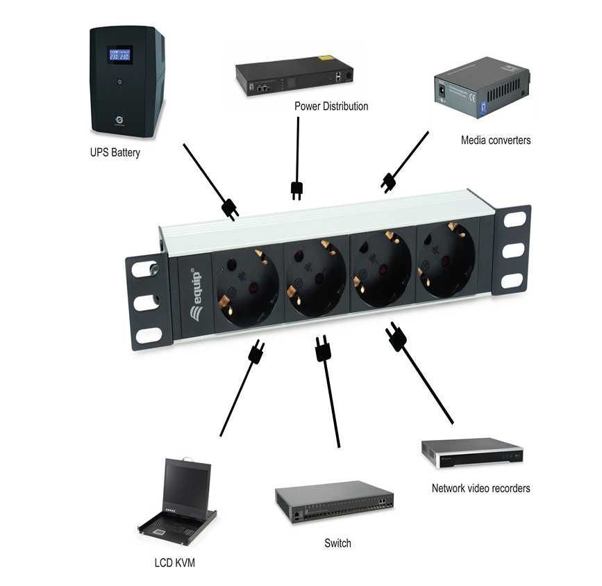 Equip 25,4 cm ( 10 Zoll ) Steckdosenleiste CEE7/7 90°->4xSchuko