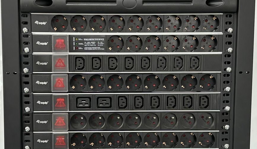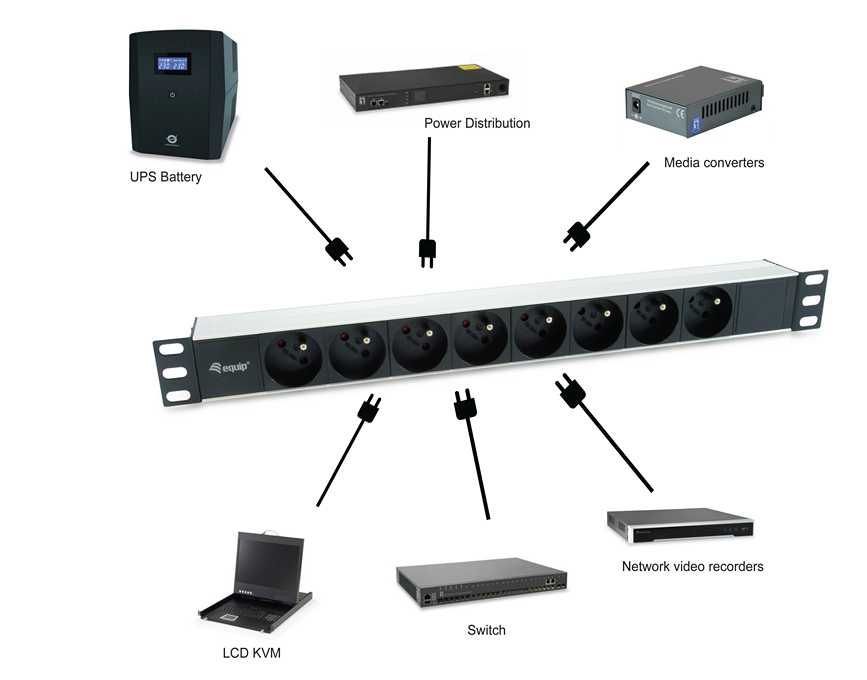 Der Artikel Equip 48,3 cm ( 19 Zoll ) Steckdosenleiste CEE7/7 90°->8xNFC 61-314 FR Alu. ist derzeit auf Lager