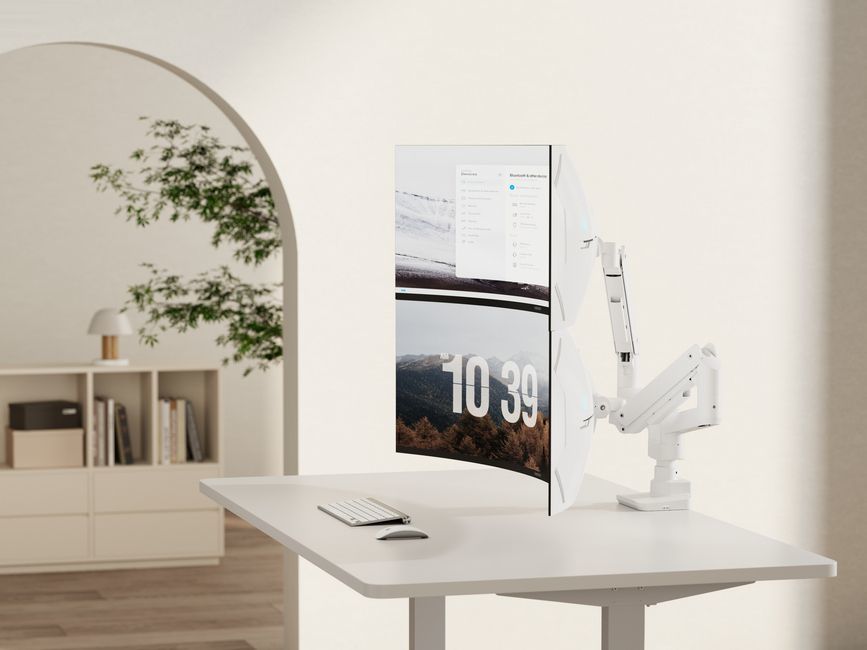 Der Artikel Equip Tischhalterung 43,2 cm ( 17 Zoll )-88,9 cm ( 35 Zoll )/2TFT 360° Gasfeder 20Kg weiß retail ist derzeit auf Lager