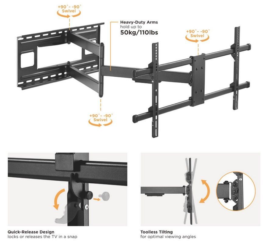 Der Artikel Equip Wandhalterung 109,2 cm ( 43 Zoll )-203,2 cm ( 80 Zoll ) /1TFT 50kg 4Gelenke neig/schw sw retail ist derzeit auf Lager