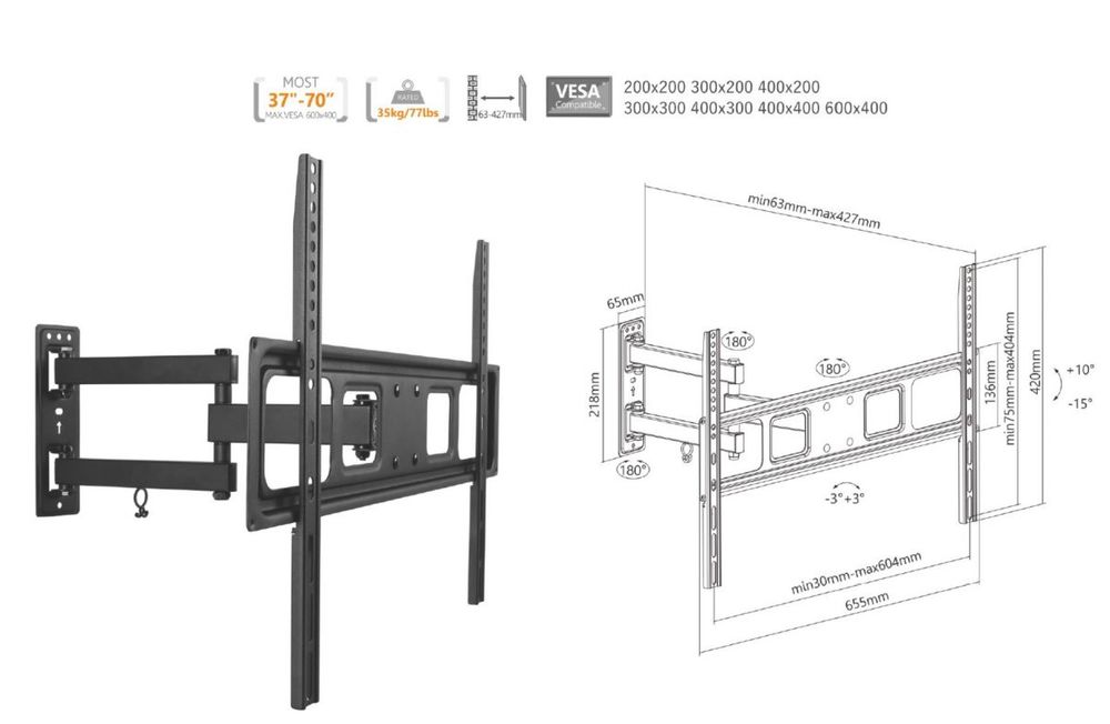 Equip Wandhalterung 94 cm ( 37 Zoll )-177,8 cm ( 70 Zoll ) /1TFT 35kg 4Gelenke neig/schw sw retail