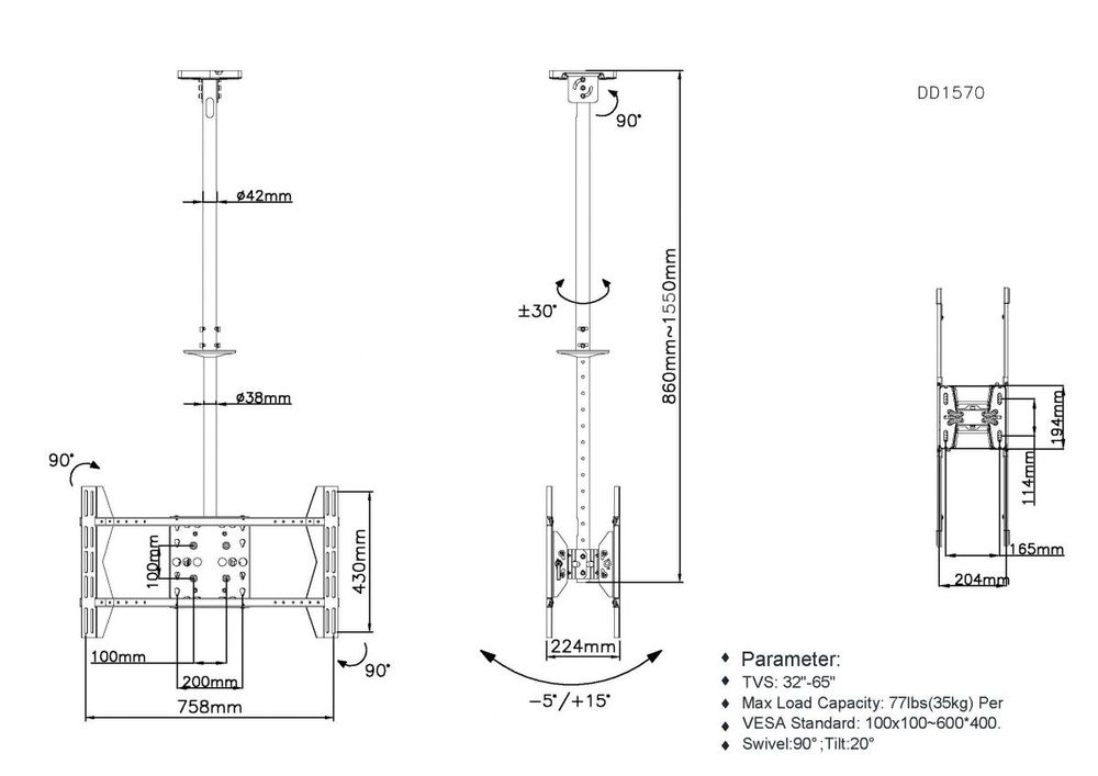 Equip Deckenhalterung 81,3 cm ( 32 Zoll )-190,5 cm ( 75 Zoll )/2TFT 60Kg Rücken->Rücken sw lite Retail