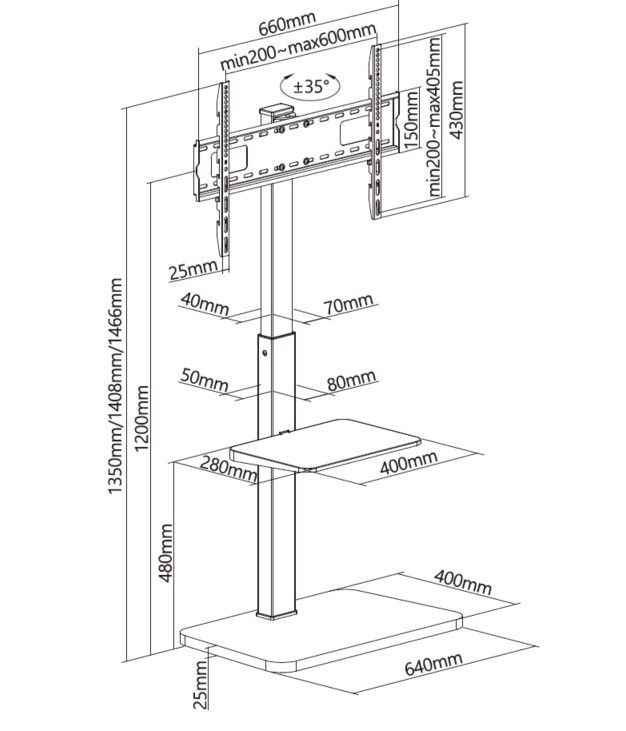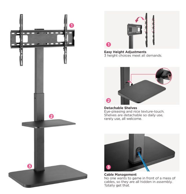 Der Artikel Equip Bodenstandhalter 94 cm ( 37 Zoll )-190,5 cm ( 75 Zoll )/1TFT 30kg sw lite Retail ist derzeit auf Lager