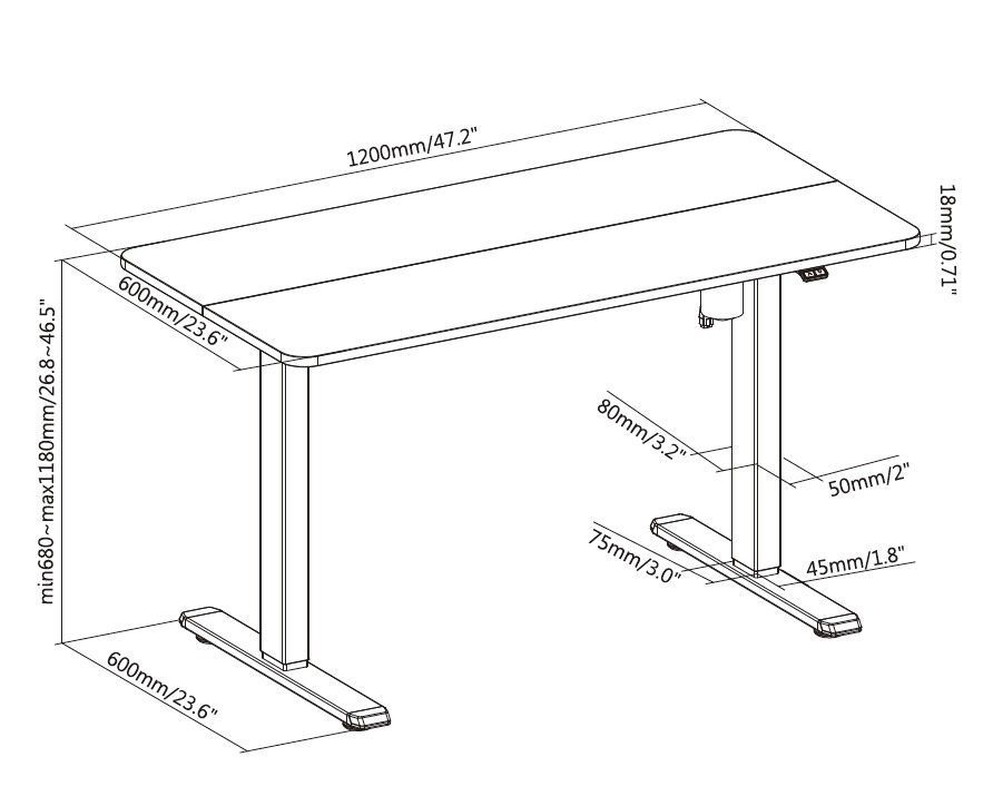 Equip Schreibtisch Single Motor elek. 70Kg gr lite Retail (Speditionsversand)