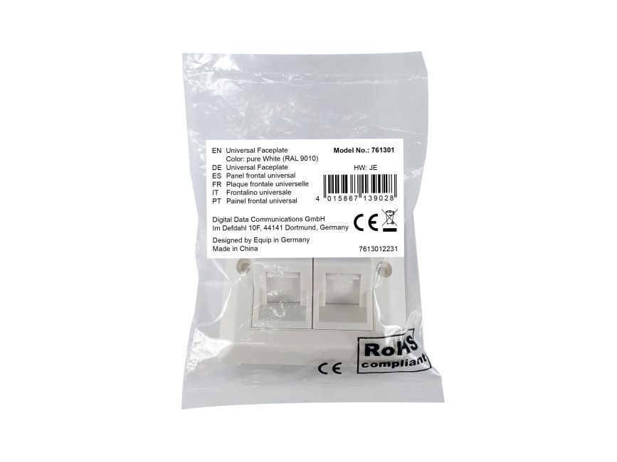 Der Artikel Equip Frontplatte 2xKeystone Jack 45° Universal RAL9010 ist derzeit auf Lager
