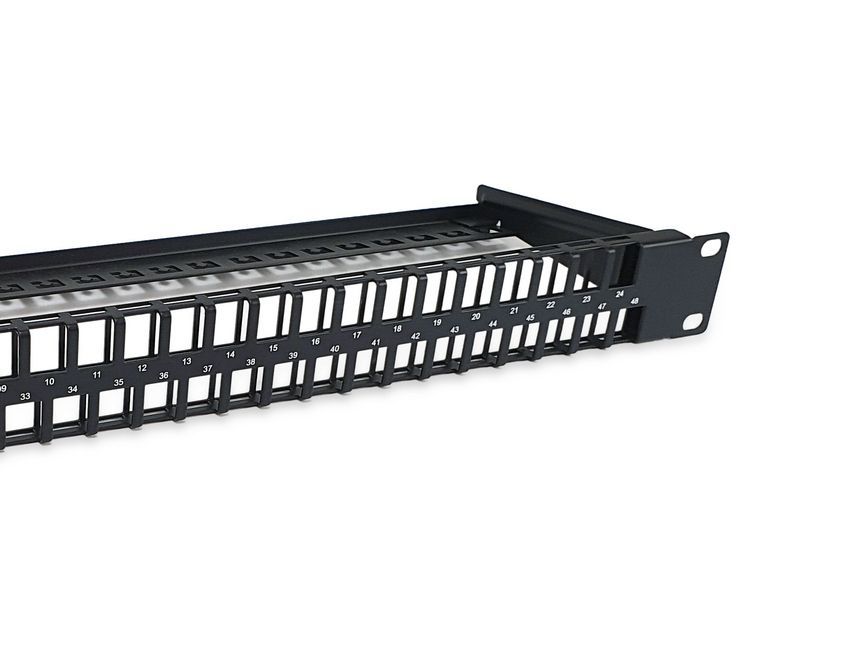 Der Artikel Equip 48,3 cm ( 19 Zoll ) Patchpanel 48xKeystones UTP 1U LSA/110 RAL9005 ist derzeit auf Lager