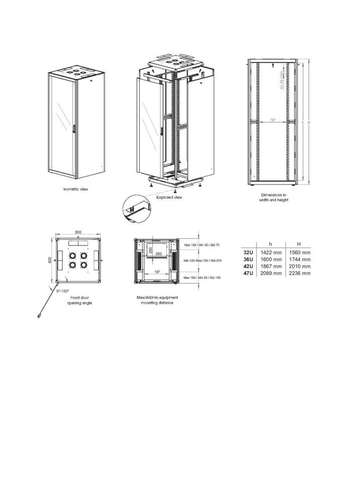 Equip 48,3 cm ( 19 Zoll ) Serverschrank Glastür BF 800x 800mm 32U grau