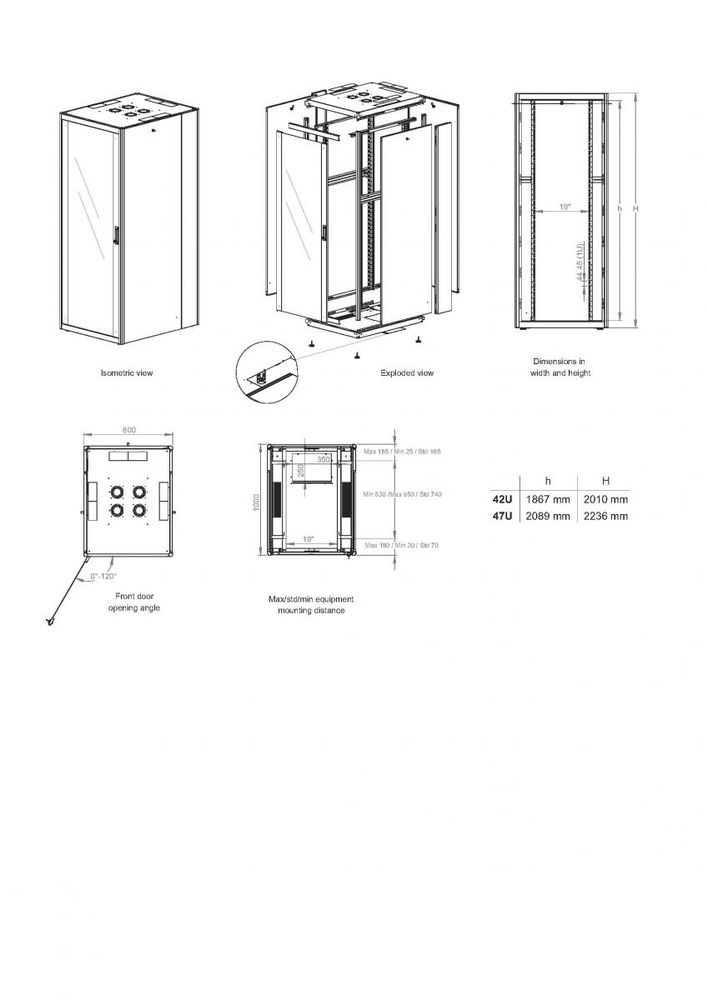 Equip 48,3 cm ( 19 Zoll ) Serverschrank Glastür BF 800x1000mm 42U grau