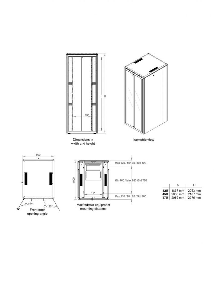 Equip 48,3 cm ( 19 Zoll ) Serverschrank Glastür DF 800x1000mm 26U grau