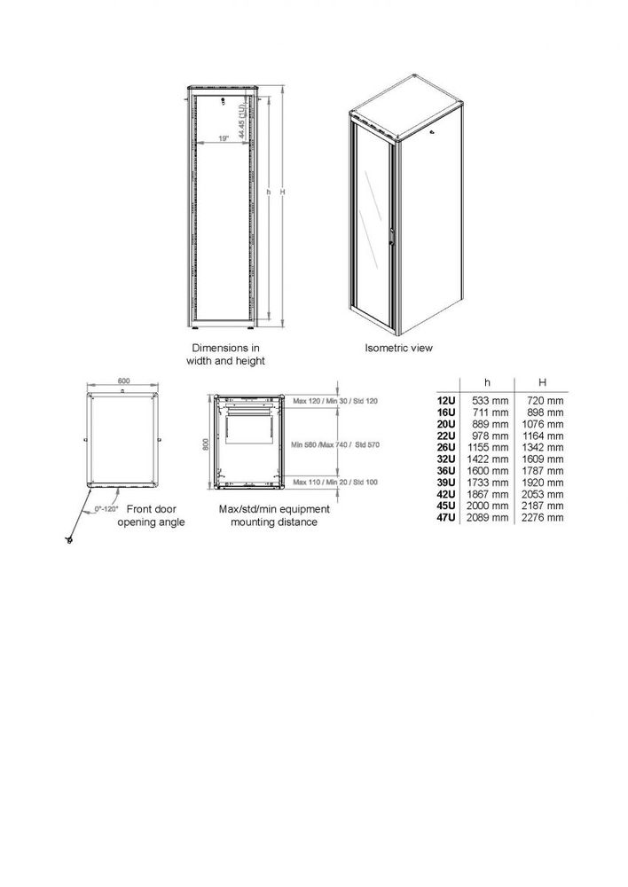 Equip 48,3 cm ( 19 Zoll ) Serverschrank Glastür DF 600x 800mm 42U grau