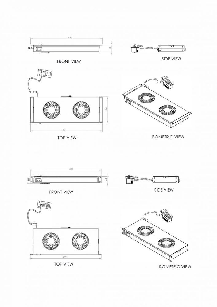 Equip 48,3 cm ( 19 Zoll ) Lüfter für Serverschränke/2xLüfter 1U RAL7035
