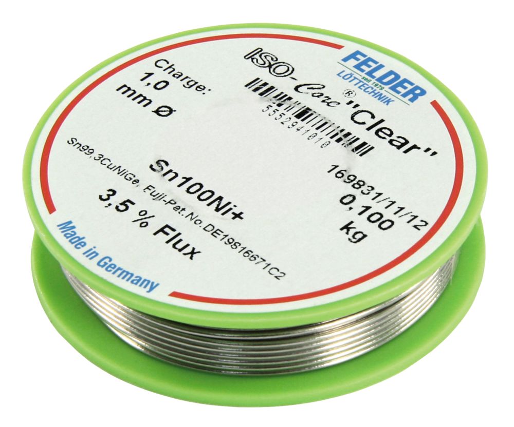 Felder Löttechnik ETT-1540264 Lötzinn auf Rolle FELDER, ISO-Core ''Clear'', 1,0mm, 100g, bleifrei (Sn100%Ni+)