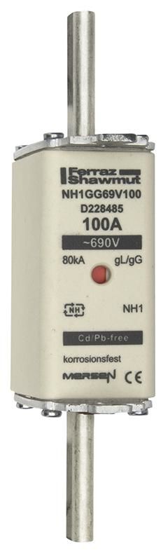Ferraz Shawmut D228485 Mersen NH1GG69V100 Sicherungseinsatz NH gG Größe 1 AC690V 100A sfü Kombikennmelder