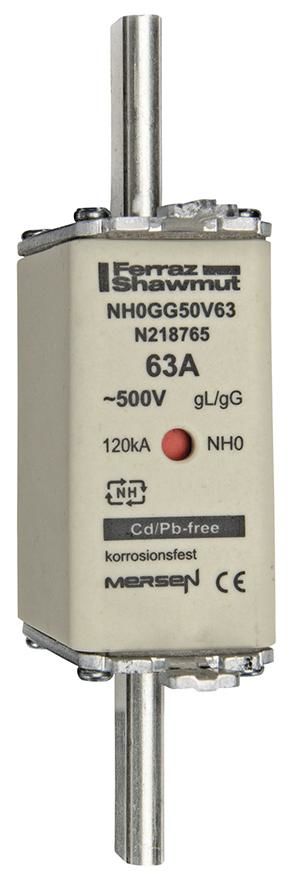 Ferraz Shawmut N218765 Mersen NH0GG50V63 Sicherungseinsatz NH gG Größe 0 AC500V 63A sfü Kombikennmelder