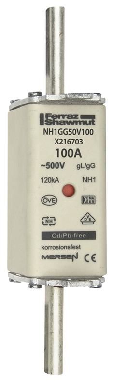 Ferraz Shawmut X216703 Mersen NH1GG50V100 Sicherungseinsatz NH gG Größe 1 AC500V 100A sfü Kombikennmelder