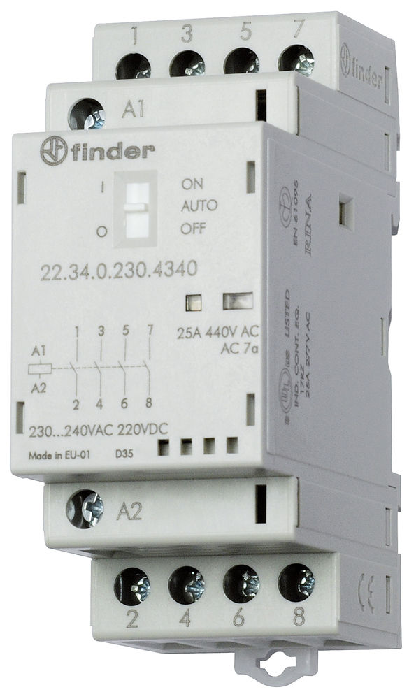 Finder 22.34.0.230.4340 Schütz 230VAC/DC REG 4S 25A Auto-Off-On-Schalter LED-Anz.