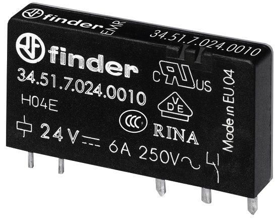 Finder 34.51.7.005.5010 Relais 6A 5VDC hartvergoldet sen. schmal Steck/Print.